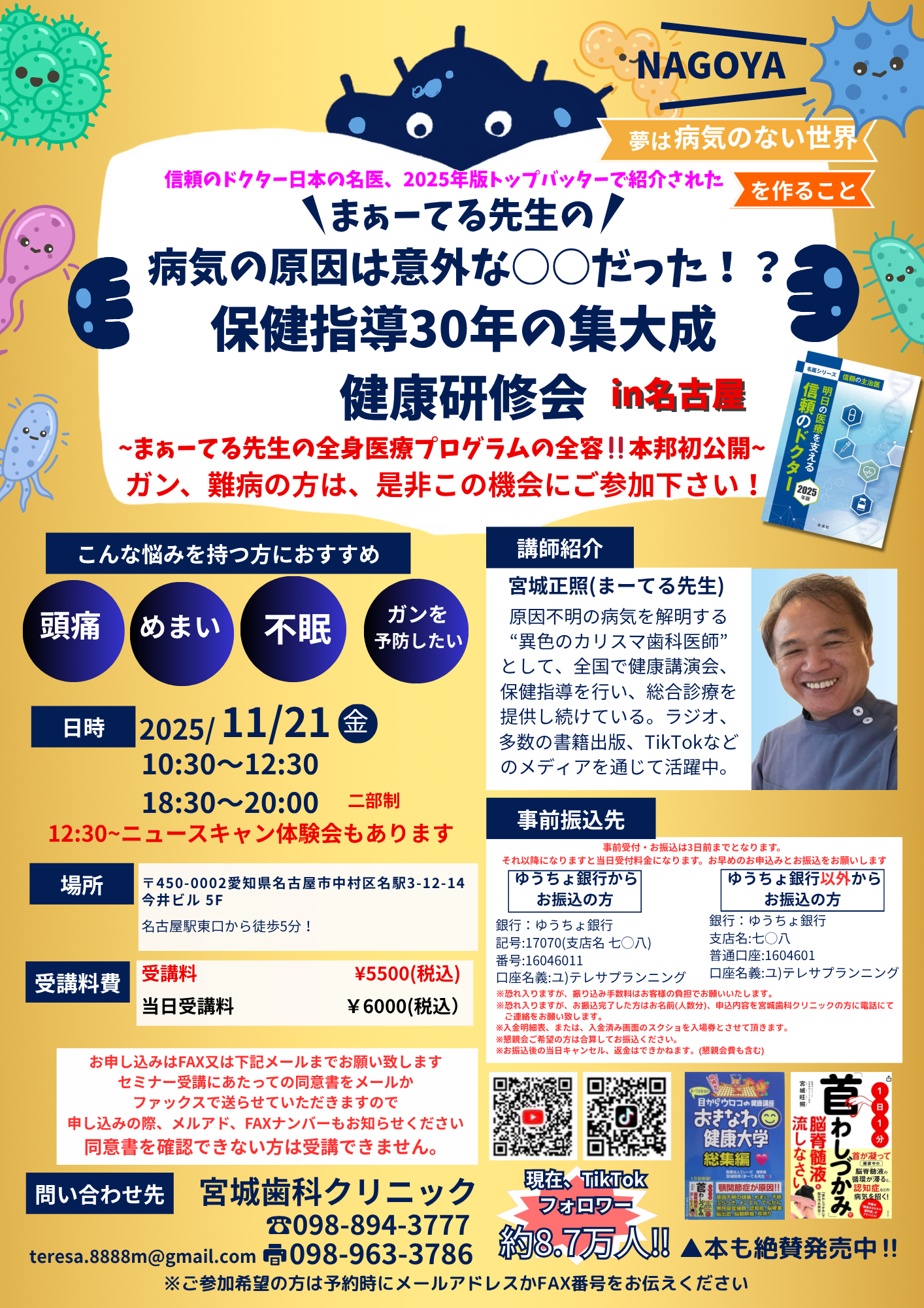 保健指導30年の集大成!「まぁーてる先生の全身医療プログラムの全容!!本邦初公開」など、講演会でしか聞けないお話が満載です!ぜひ …